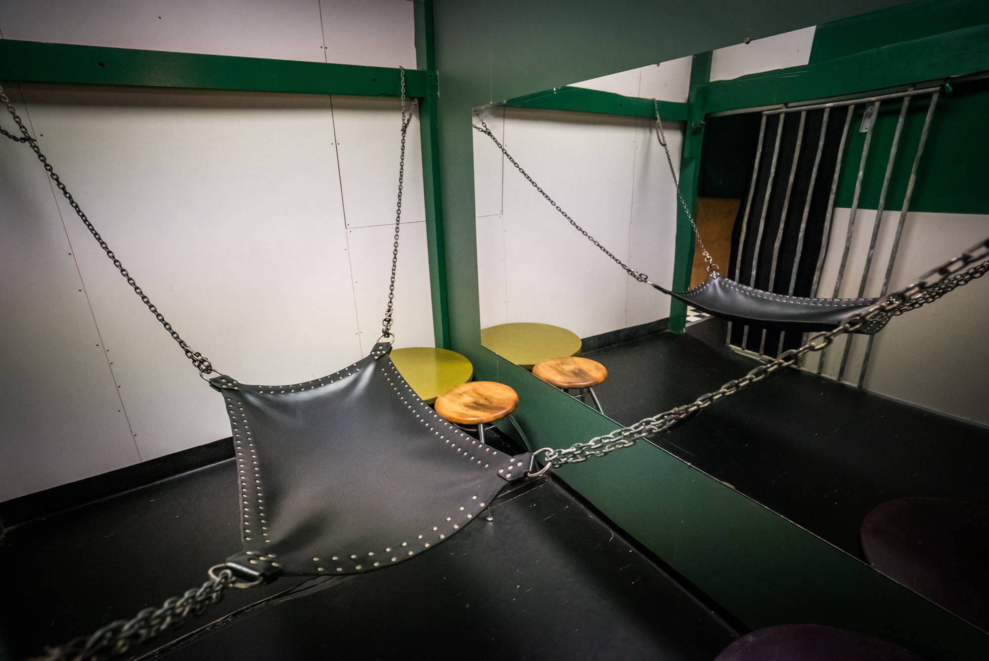 Steam Room, Sauna, Spa, Private Rooms, BDSM Dungeon, Sling Room, Glory Hole Room, Video Room, Massage Room, Lounge, Showers, Restroom.